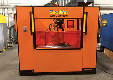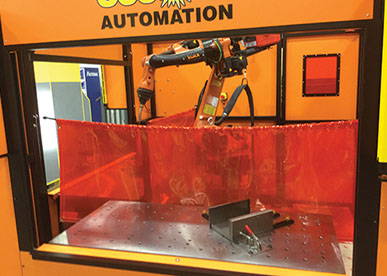 has sheet metal protection, adequate space and built-in wiring paths for most major/standard robot controllers, power/wire supply units, and water coolers necessary making this cell a fully integrated, automated welding solution.